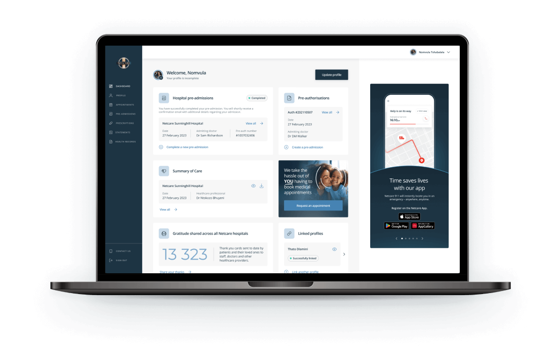 MyNetcare Online is your personal healthcare management platform. Conveniently book medical appointments, do hospital pre-admissions, access your Summary of Care, and so much more.